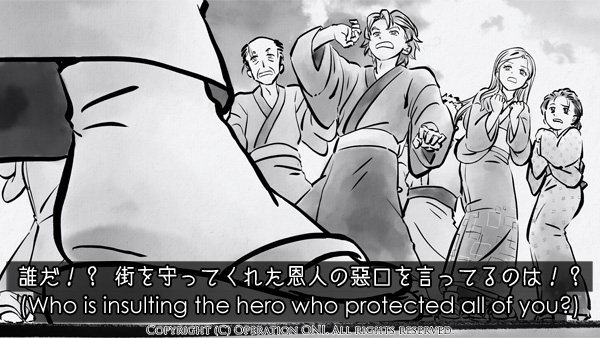Onatsu está gritando com a multidão!